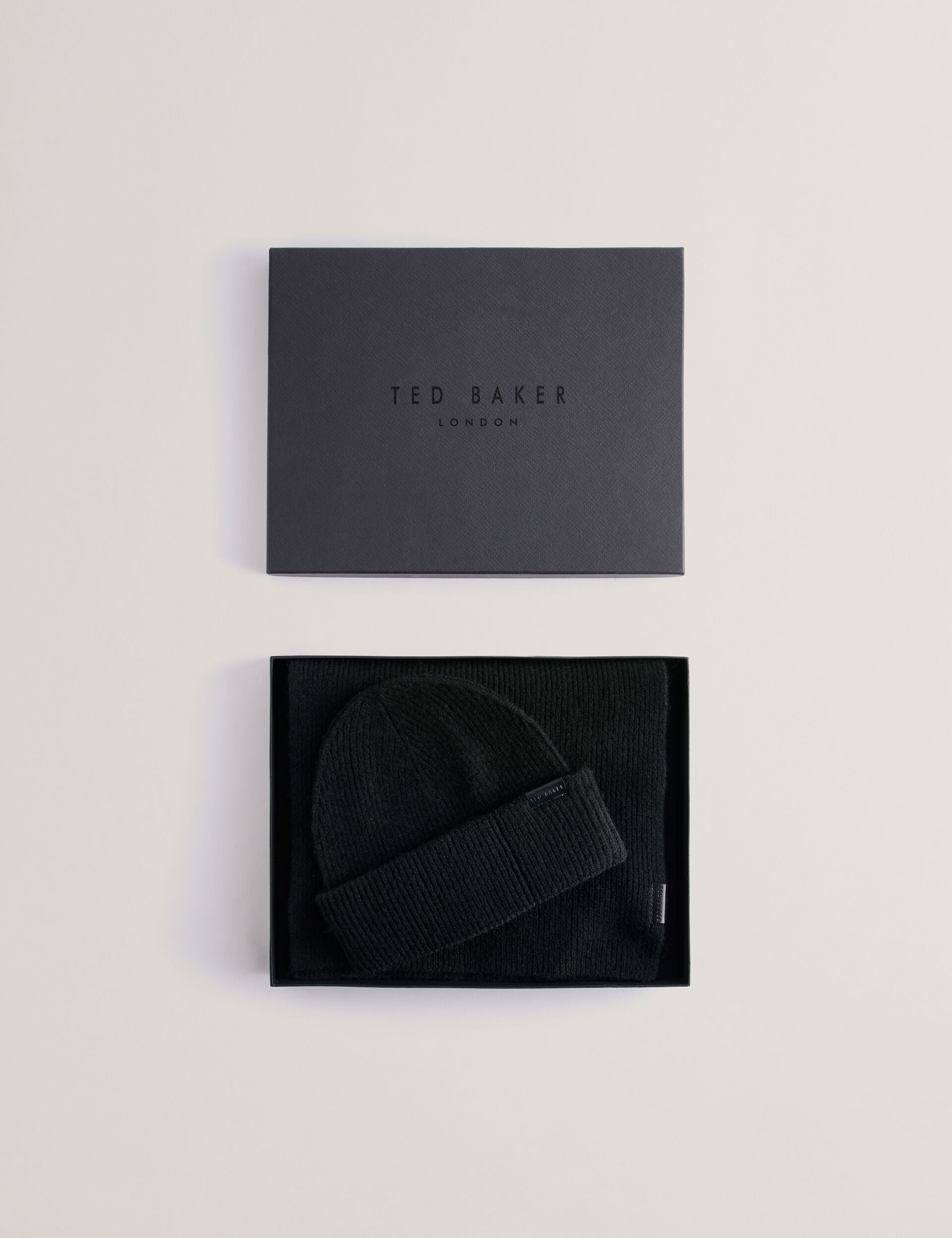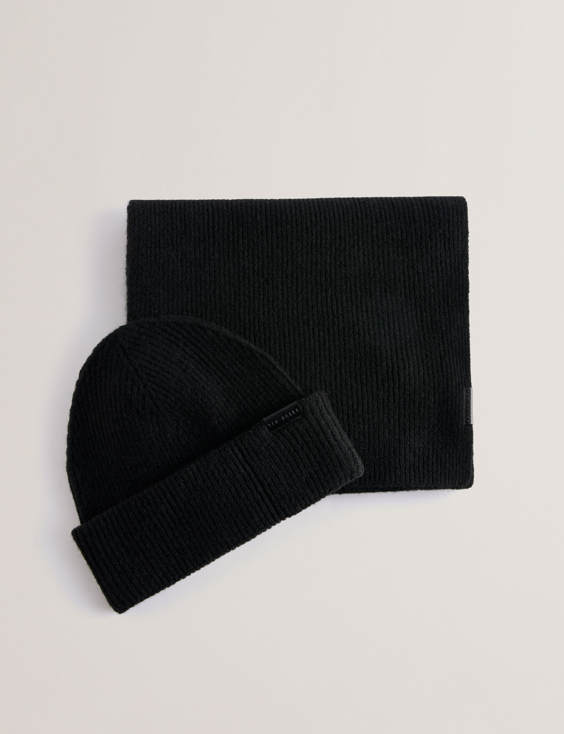 Ted Baker Men’s Alliies – Ribbed Knit Hat And Scarf Set | Black