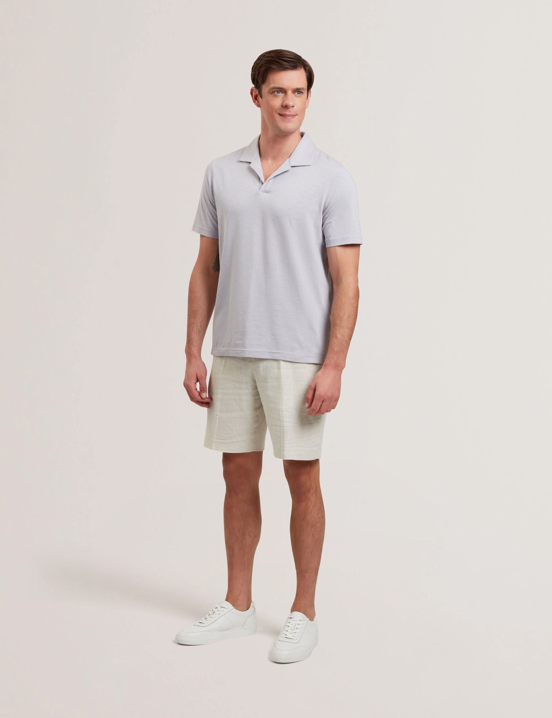 Ted Baker Men’s Anito – Cotton Linen Open Neck Polo Shirt | Pl-purple