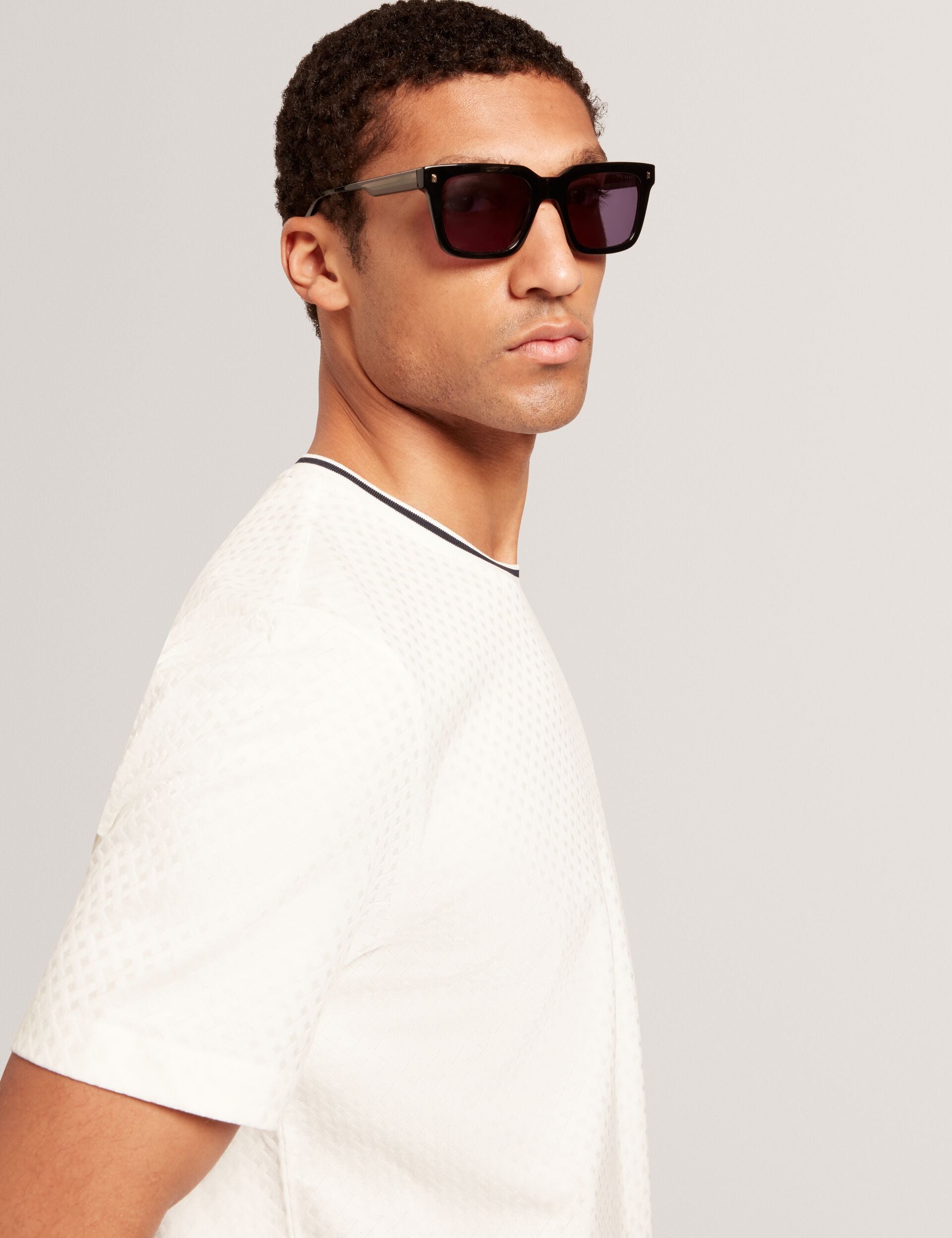- All-over branded T texture