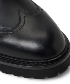 - Brogue-inspired stitch and perforation details