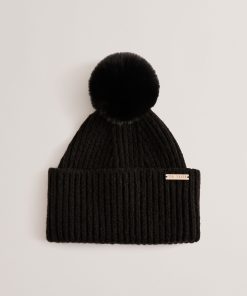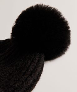 Ted Baker Women’s Emilyya – Ribbed Knit Fluffy Bobble Hat | Black